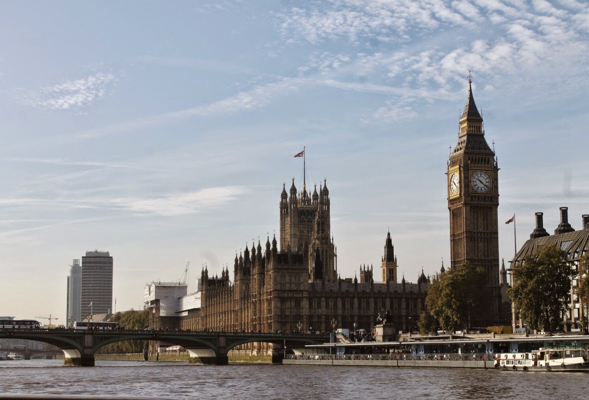 We arrived Tuesday evening so that didn't leave time to do anything but get dinner and rest in the hotel that evening, but Wednesday started out the planned activities and adventuring. We woke up early and had a traditional English breakfast that the hotel provided for us. English do it big for breakfast! Eggs, breads, pastries, tomatoes, baked beans, bacon, tea, coffee, juices....it was so nice! We then took a little boat ride down the Thames river and saw Big Ben from afar and the London Eye.